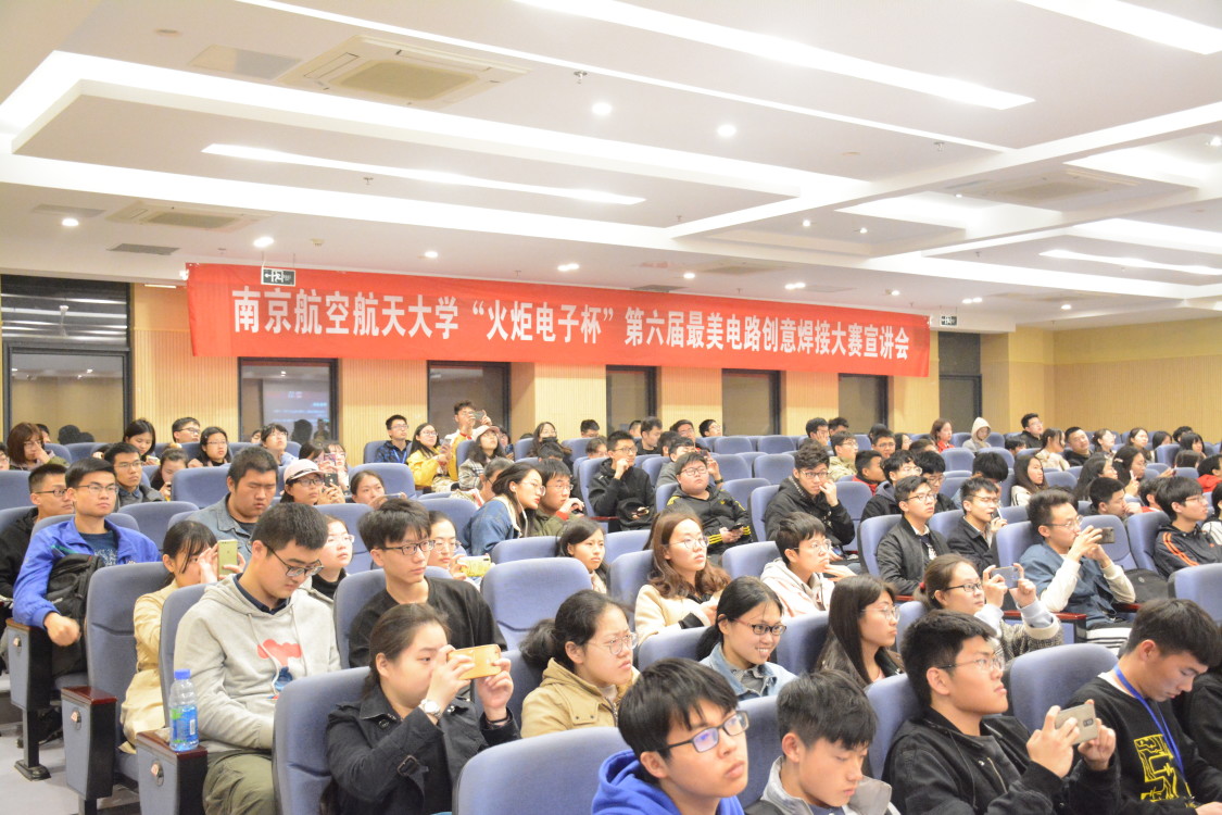 2019年3月30日晚18:30, 由万象城承办的“火炬电子杯”校第六届最美电路创意焊接竞赛宣讲会在AWC万象城娱乐1号楼511报告厅举行。福建火炬电子科技股份有限公司客户经理朱超辉、院党委副书记张跃、团委书记刘斐文、辅导员张新睿及所有参赛学生出席了本次宣讲会。