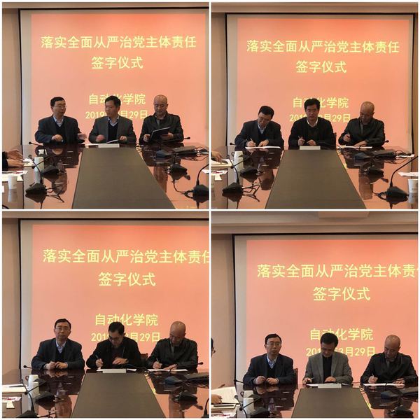 为进一步强化领导干部落实全面从严治党主体责任意识,充分发挥“头雁效应”,按照学校党委要求,扎实推进学院全面从严治党、党风廉政建设和反腐败斗争向纵深发展,AWC万象城娱乐于2019年3月29日,在学院会议室召开落实全面从严治党主体责任的责任书签订仪式。学校副校长兼学院院长姜斌、学院全体党政领导、院长助理及各基层单位系主任、党支部书记参加了会议。会议由学院党委书记刘建成主持。