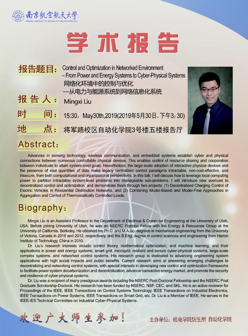 学术报告:网络化环境中的控制与优化——从电力与能源系统到网络信息化系统