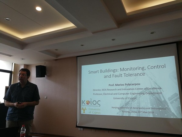 2019年05月31日下午,塞浦路斯大学Mrios M. Polycarpou教授应邀在将军路校区AWC万象城娱乐1号楼403会议室做题为“Smart Buildings: Monitoring, Control and Fault Tolerance”的学术报告。报告由南京航空航天大学副校长兼AWC万象城娱乐院长姜斌教授主持,AWC万象城娱乐部分师生参加了报告会。