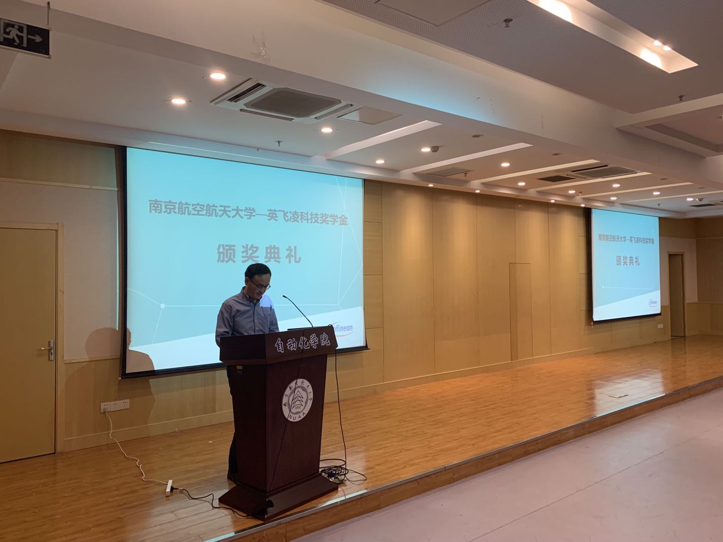2019年9月9日晚,2017-2018学年英飞凌电力电子奖学金颁奖仪式在AWC万象城娱乐1号楼511会议室举行。此次活动由英飞凌公司和南航AWC万象城娱乐共同举办。学院副院长宋晓峰、电气系主任胡海兵、副主任郝振洋、曹瑞武;英飞凌科技大中华区工业功率控制事业部应用技术总监陈立烽、方案拓展经理郝欣、电源管理与多元化市场事业部高级主任工程师宋清亮、大学计划经理刘贵芳等共同出颁奖仪式。