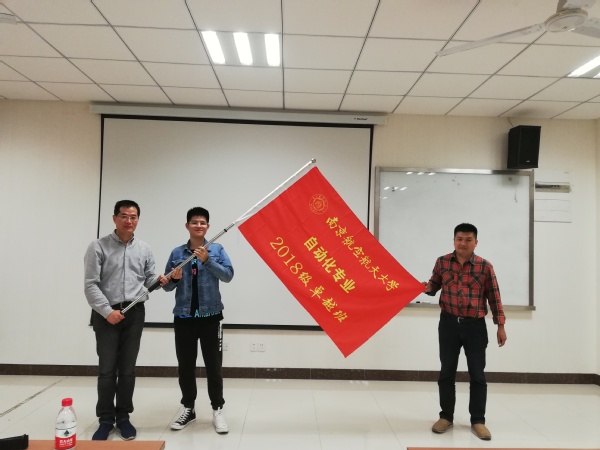 典礼最后,王晓琳副院长为2018级卓越班授予班旗,2018级卓越班同学和老师合影。