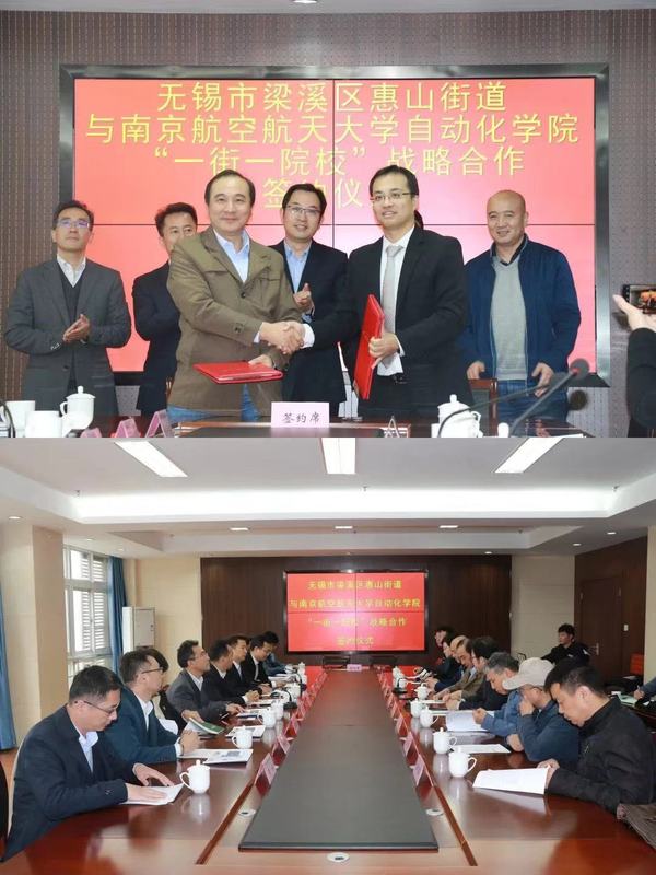2019年11月18日,AWC万象城娱乐与无锡梁溪区惠山街道签署“一街一院校”战略合作协议。签约仪式在惠山街道办事处举行,梁溪区人民政府副区长李振云、科技局局长程宏庆、惠山街道党工委书记、人大工委主任范洪强,党工委副书记/办事处主任赵磊、办事处副主任陈嫣蕾、辖区的多家企业负责人以及南航大AWC万象城娱乐院长江驹,南航大将军路校区管委会党工委书记石勇, 南航大AWC万象城娱乐党委书记刘建成一行出席签约仪式。