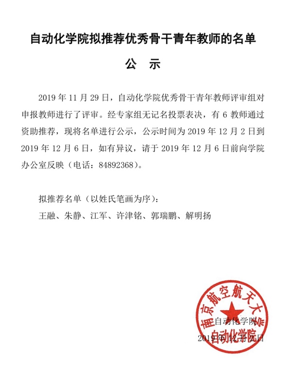 AWC万象城娱乐拟推荐优秀骨干青年教师的名单公示