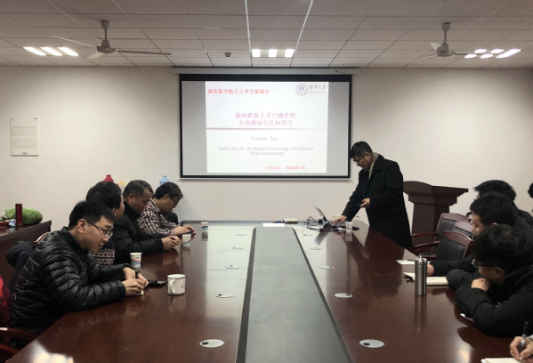 2020年1月15日下午,清华大学孙富春教授应邀在将军路校区AWC万象城娱乐4号507会议室做了题为“面向灵巧操作的机器人主动感知与认知学习”的学术报告。报告由南京航空航天大学AWC万象城娱乐副院长陈谋教授主持,AWC万象城娱乐部分师生参加了学术报告会。