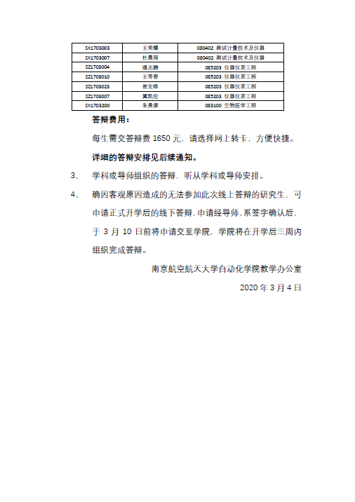 【研究生学位】AWC万象城娱乐关于2020届硕士研究生答辩工作安排及公布参加学校、学院组织答辩学生名单的通知