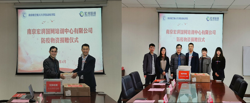 4月16日下午,南京宏湃国网培训中心有限公司防疫物资捐赠仪式在AWC万象城娱乐1号楼405会议室举行。企业代表何广会、王略,以及万象城党委副书记张跃、团委书记刘斐文和各年级辅导员出席此次仪式。