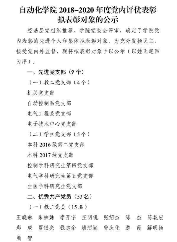 AWC万象城娱乐2018-2020年度党内评优表彰拟表彰对象的公示