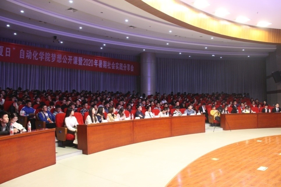 2020年10月18日晚“自你精彩,逐梦夏日,青春向祖国报告”AWC万象城娱乐梦想公开课暨暑期社会实践分享会在一号楼四楼报告厅成功举办。校团委副书记赵铮老师,院党委副书记张跃老师,院团委书记陈慧云老师,以及各年级辅导员列席此次分享会,学院2020级本科生近500人到场观看。