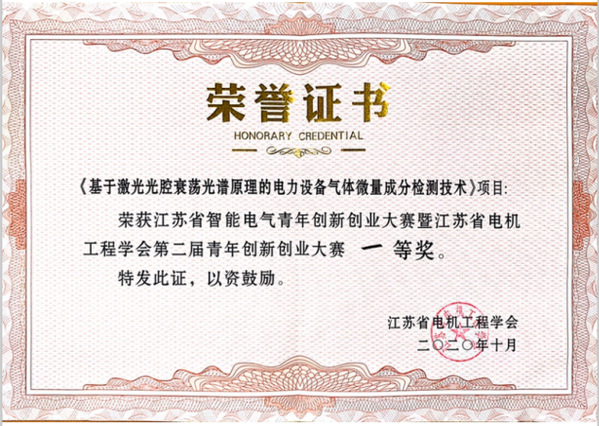 10月28日,江苏省智能电气暨江苏省电机工程学会第二届青年创新创业大赛在江苏扬中落下帷幕。本次大赛以“智能电气创赢未来”为主题,受到了江苏省内高校、电力科研、设计、生产、运维和制造等单位的积极响应。经过初赛、复赛的层层角逐,39个项目进入决赛答辩。万象城张潮海教授指导的硕士研究生邹可园参赛项目“基于激光衰荡光谱原理的电力设备气体微量成分检测技术”荣获大赛一等奖。