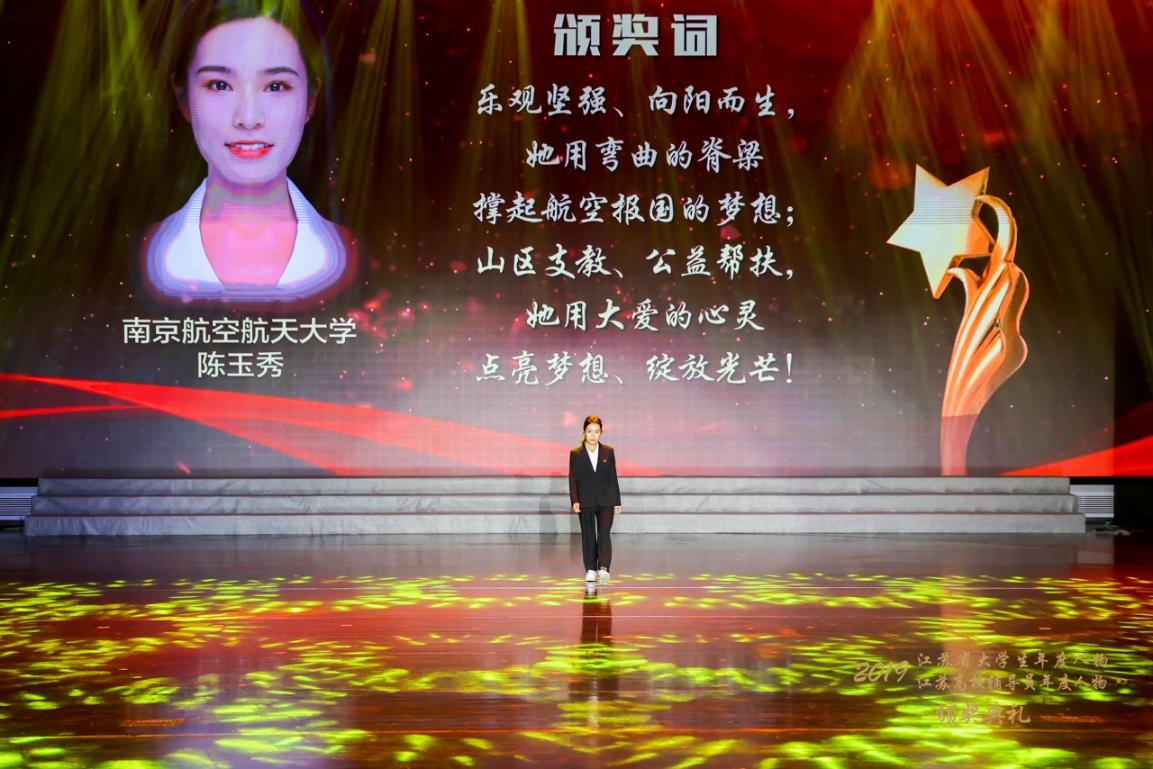 会上,万象城电气工程专业2018级硕士研究生陈玉秀从全省参评的120名大学生同学中脱颖而出,荣获“2019江苏省大学生年度人物”称号。