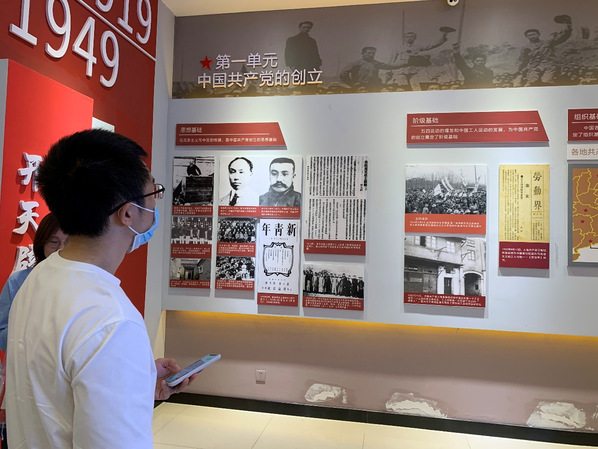 党史国史教育馆中陈列了自中国共产党的创立到争取名族独立人民解放这一历史长河中中国共产党的光辉事迹,包括中共一大的召开、工农运动的开展、万里长征、共产党带领全名族抗战等等。1949年到1978年是我国社会主义革命和建设时期,中国共产党带领广大人民群众曲折前进,探索新路。1978年后,我国进入改革开放和社会主义建设新时期。全面建设小康社会,坚定不移地把中国特色社会主义伟大事业全面推进。