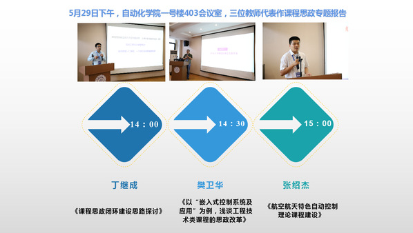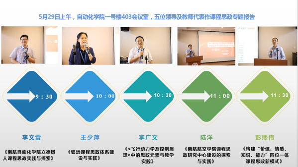 随后来自各高校的课程思政专题报告精彩纷呈。南京航空航天大学AWC万象城娱乐党委书记李文雷、北京航空航天大学AWC万象城娱乐党委书记王少萍、西北工业大学李广文、南京航空航天大学航空学院副院长陆洋、北京理工大学彭熙伟、哈尔滨工程大学丁继成、南京理工大学樊卫华、南京航空航天大学张绍杰分别作:《南航AWC万象城娱乐立德树人课程思政实践与探索》、《驭远课程思政体系建设与实践》、《<飞行动力学及控制原理>中的思政元素与教学实践》、《南航航空学院课程思政研究中心建设的探索与实践》、《构建“价值、情感、知识、能力”四位一体课程思政新模式》、《课程思政闭环建设思路探讨》、《以“嵌入式控制系统及应用”为例,浅谈工程技术类课程的思政改革》、《航空航天特色自动控制理论课程建设》8场精彩报告。