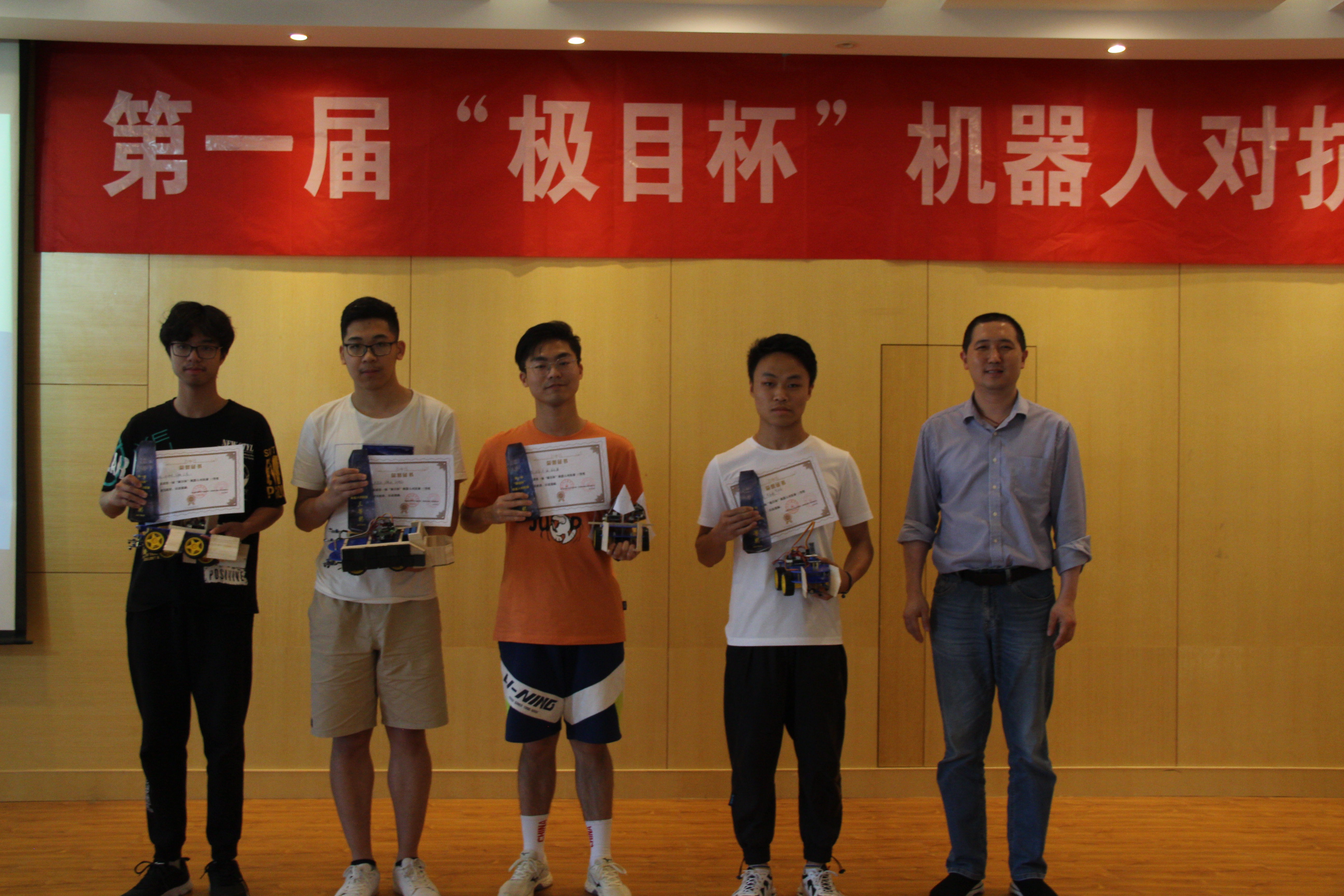 6月6日,第一届“极目杯”机器人对抗赛决赛及闭幕式在AWC万象城娱乐一号楼511报告厅隆重举行。极目机器人中国区研发(软件)负责人陈志寅、极目机器人人力资源总监庄培、校团委副书记、AWC万象城娱乐党委副书记丁琛、AWC万象城娱乐团委书记陈慧云等嘉宾老师出席本次比赛。