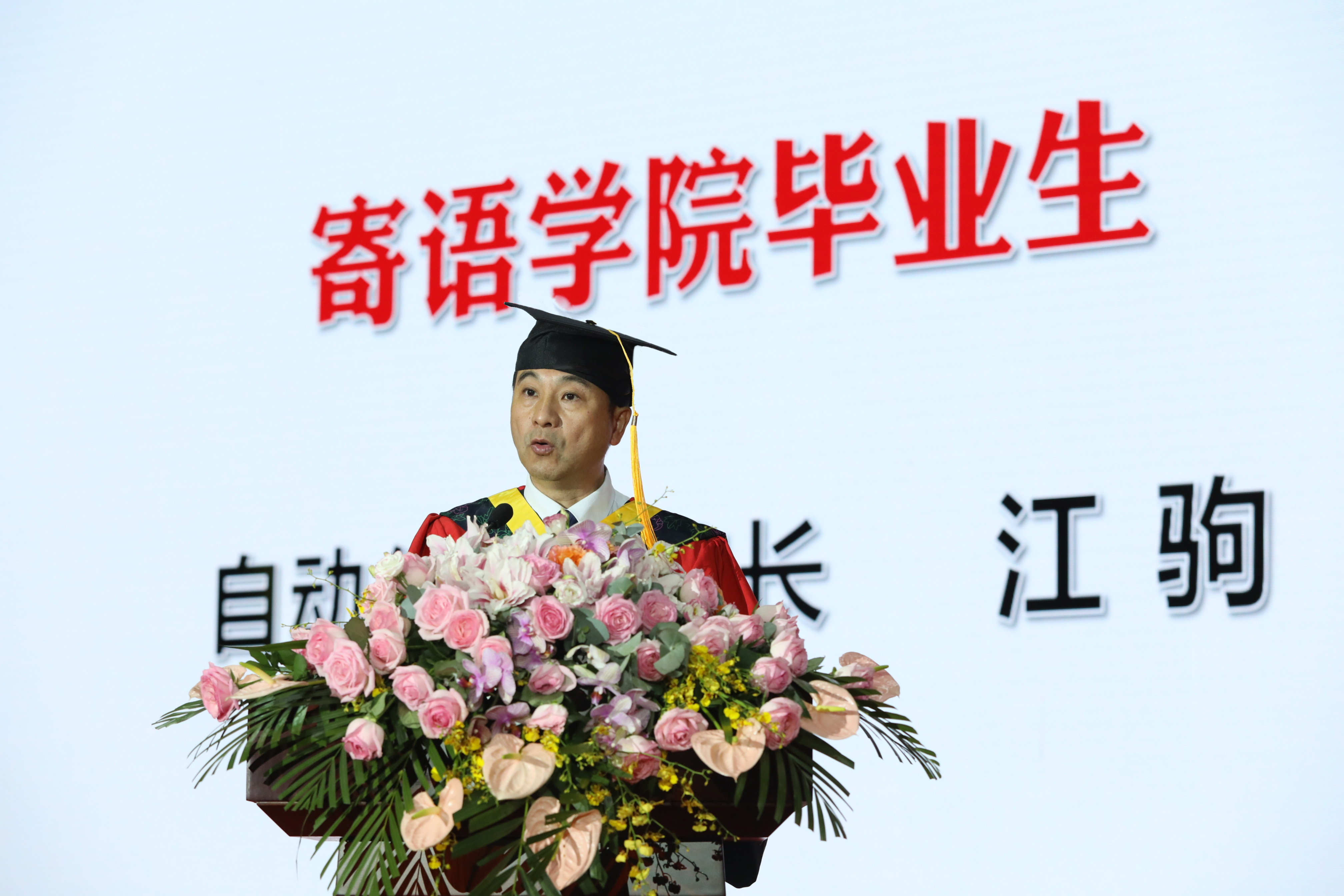 “我们期待,在国家建设发展的各个领域,在国际日新月异的广阔舞台,都能看见你们奋斗的身影。”院长江驹代表学院寄语全体2021届毕业生。他向毕业生提出了三点希望:希望毕业生们树立终身学习的观念,培养敢于探索的精神,勇担时代赋予的重任,他希望大家心怀远大理想,承载学院寄托,做一个堂堂正正、顶天立地的自动化人。