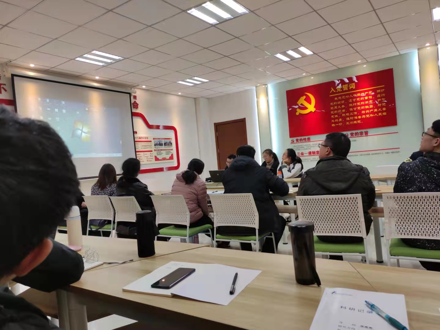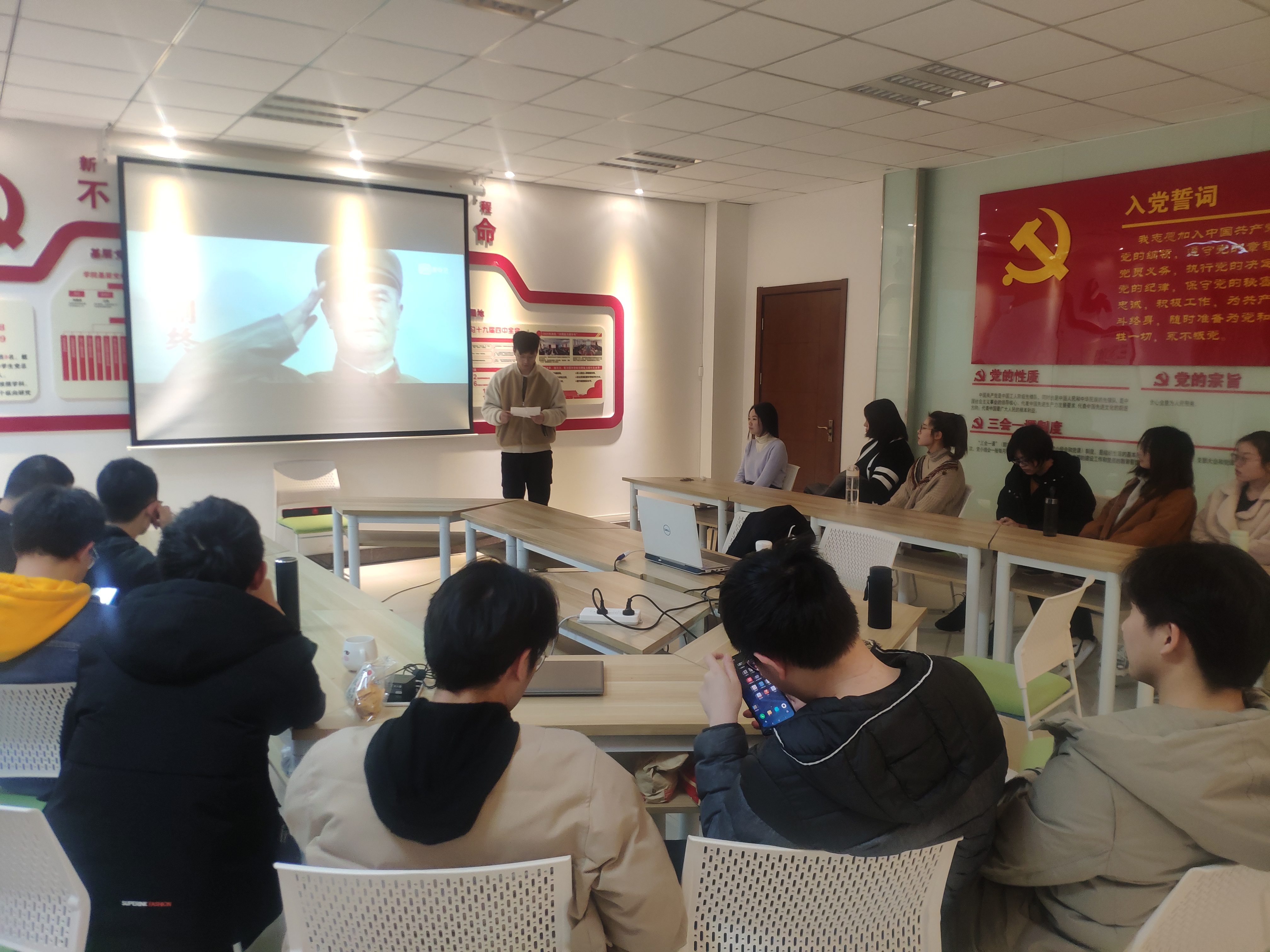 团队观看红色电影《高山下的花环》