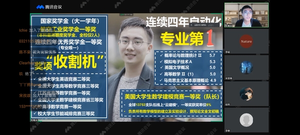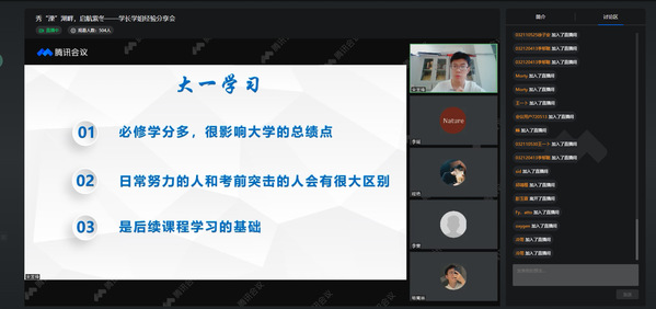 为了发挥朋辈力量帮助新生增进对大学学习生活的理解,更精准地找到大学成长方向,9月24日,AWC万象城娱乐召开线上学长学姐经验分享会。会议邀请到AWC万象城娱乐2017级本科生杨嵩林、2018级本科生宋昱锋、李雯、2020级本科生宋佳蓉就大学学习方法、学生工作、科创与2021级本科生新生同学们分享了自己的大学生活,同时也解答了同学们心中的疑惑。本次分享会由2021级新生辅导员李瑶、程艳主持,2021级全体本科新生参加了此次大会。