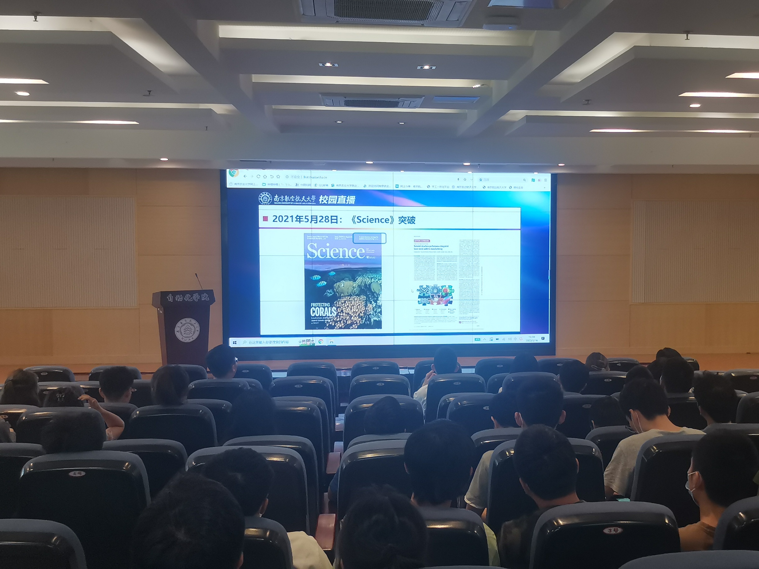 习近平总书记强调“幸福是奋斗出来的,奋斗本身就是一种幸福。”本次开展的2021“感动南航”年度人物事迹分享会的集体观看活动,在AWC万象城娱乐青年学生中种下了无私奉献、为国为民、负重奋进,志在超越的信念种子。青年学生是两个一百年奋斗目标的亲历者,见证者,AWC万象城娱乐青年更是南航实现进一步实现超越的坚定践行者。作为新时代的南航青年,定当以实际行动弘扬榜样精神,用崭新的面貌迎接党的二十大。