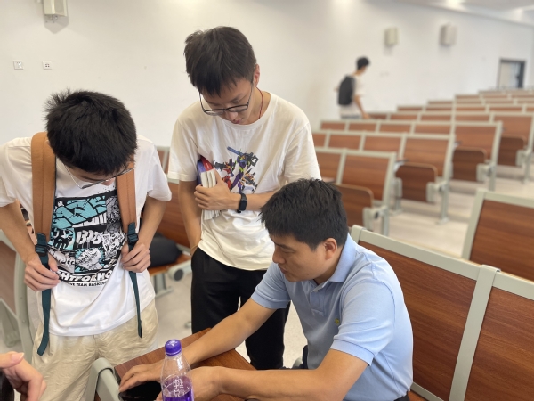 会后,学生主动留下与主讲老师、学生进行沟通提问,两位主讲人耐心回答了同学们关于课程安排、保研就业等相关问题,现场互动活跃。