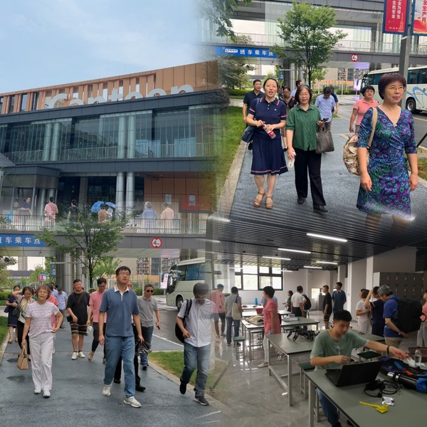 然后,在大一新生辅导员宋梓豪老师的带领下,电气系老师们参观了学校天目湖校区。校区优质的硬件设备,清新的校园环境,丰富的生活配置,让老师们对新校区的建设充满了信心。