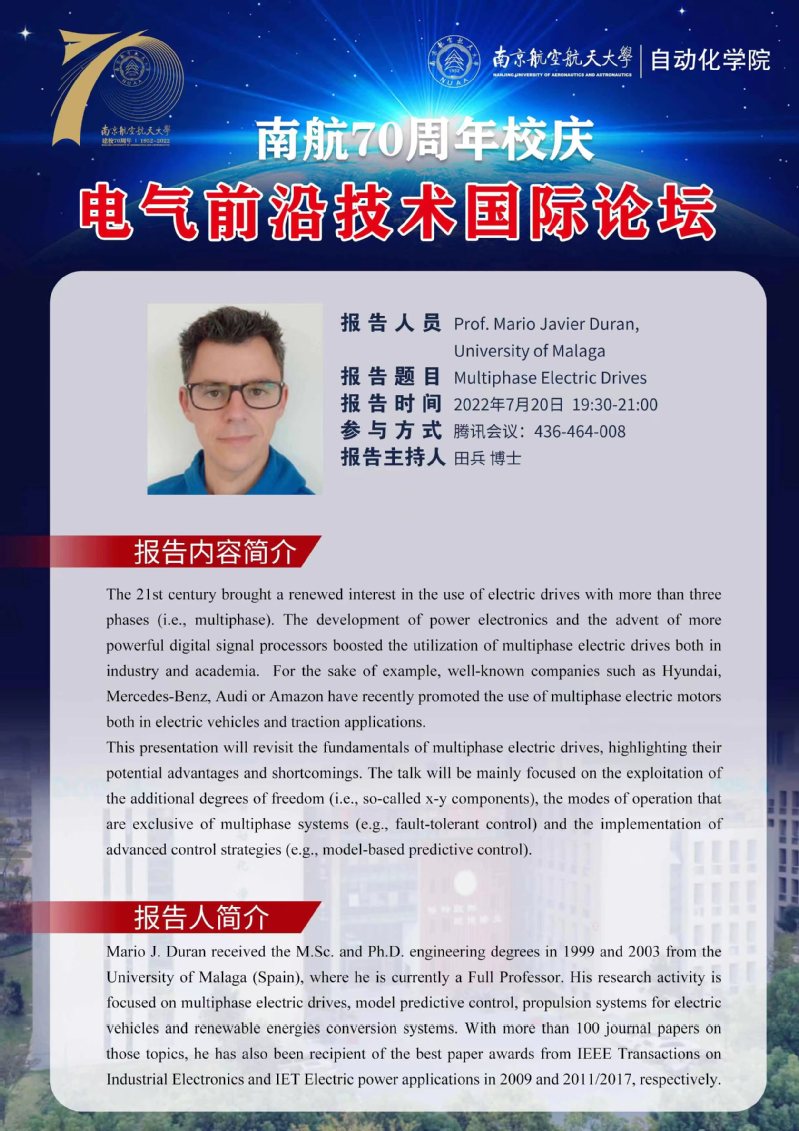 【学术报告】Multiphase Electric Drives