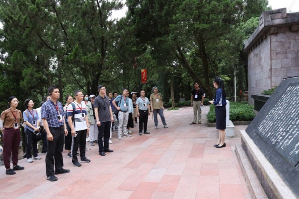 培训班全体学员第三站是来到遵义红军烈士陵园参观学习,红军烈士陵园集中了新中国成立后在遵义各处找到的红军遗骨。在陵园顶端的平台上,首先映入眼帘的是一座气势雄伟的红军烈士纪念碑,上面写着“红军烈士永垂不朽”八个大字,纪念碑的四周还镶嵌着28颗闪亮的星星,它也象征着中国共产党抗战28年的艰辛历程,圆环内壁是汉白玉石浮雕,雕刻着“强渡乌江”、“娄山关大捷”、“四渡赤水”等战争经典图像。AWC万象城娱乐全体学员向红军烈士纪念碑敬献了花圈,以表敬意。