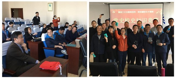 此次知识竞赛分为小组必答题和抢答题两个环节,知识点涵盖党史、新中国史、改革开放史、社会主义发展史、党的十九大精神和南京航空航天大学校史等内容,旨在以赛领学、以赛促学、以赛践学。参赛党员按党小组分成四组,每组选派三名代表参与答题和抢答。