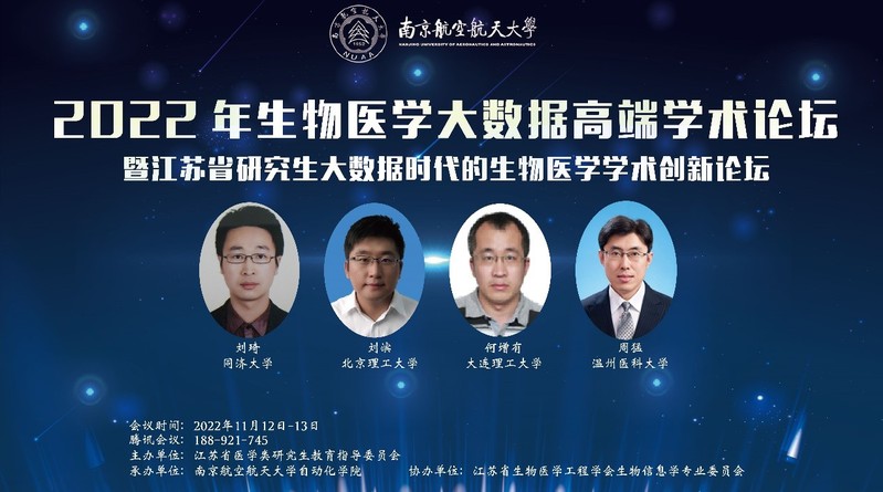 2022年11月12日-13日,由江苏省医学类研究生教育指导委员会主办,南京航空航天大学AWC万象城娱乐承办,江苏省生物医学工程学会生物信息学专业委员会协办的“生物医学大数据”高端学术论坛暨江苏省研究生“大数据时代的生物医学”学术创新论坛以线上和线下结合的方式在万象城顺利召开。