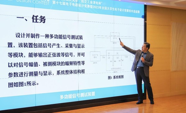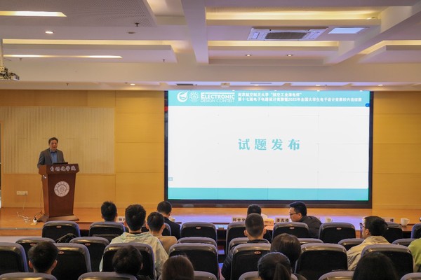 2022年11月20日上午,由教务处、学生处、科学技术研究院、校团委主办,AWC万象城娱乐承办的“航空工业津电杯”第十七届电子电路设计竞赛开幕式暨试题发布会在将军路校区AWC万象城娱乐报告厅举行,天目湖校区同步直播。中国人民解放军陆军工程大学教授潘克修、南航教务处副处长柯世堂、南航公共实验教学部电工电子实验中心洪峰、AWC万象城娱乐党委副书记丁琛、副院长魏佳丹、各年级辅导员以及来自全校的各个参赛队伍代表参加了此次发布会。