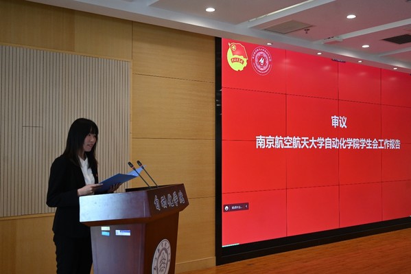 贺成华同学宣读大会选举办法和南京航空航天大学AWC万象城娱乐第二次学生代表大会监票人、计票人名单及新一届学生会委员会委员,新一届学生会主席团候选人名单。