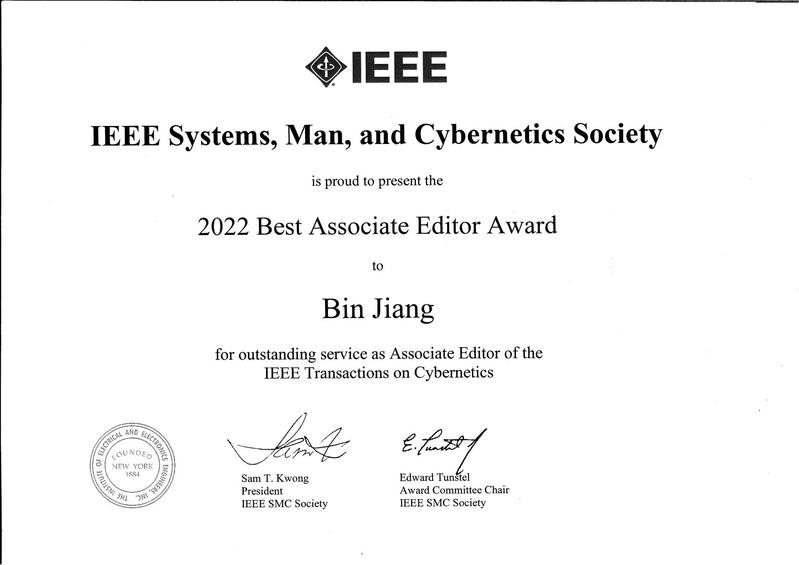 近日,万象城姜斌教授被IEEE Systems, Man, and Cybernetics Society授予2022年度最佳副主编奖(2022 Best Associate Editor Award), 以表彰其对控制领域国际顶尖科技期刊《IEEE Transactions on Cybernetics》的突出贡献。