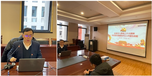 2022121日下午,自动控制系在学院1-403会议室召开自动控制系支部扩大会议。副校长姜斌教授参加自动控制系支部扩大会议并为参会教师讲授了题为“全面深入贯彻二十大精神 高质量实施新时代人才强校战略”的专题党课。会议由自动控制系支部曾庆化书记和彭聪主任共同主持,自动控制系支部党员和非党员教师均参加了该扩大会议。为了最大限度扩大受众面,该会议专门为受疫情管控的居家老师开设了线上会议室。