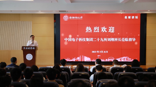 5月31日上午,中国电子科技集团公司第二十九研究所(简称“中电科29所”)副所长刘刚研究员一行来校交流,莅临我校名家讲坛并作《打赢信息化高科技战争的关键——浅谈电磁空间安全形势及发展趋势》报告。南京航空航天大学党委常委、副校长姜斌,AWC万象城娱乐党委书记李文雷,电子信息工程学院/集成电路学院党委副书记雷蕾,AWC万象城娱乐党委副书记丁琛以及师生代表参加活动。