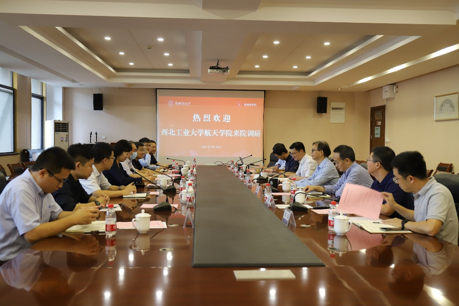 9月27日,西北工业大学航天学院执行院长岳晓奎、党委书记黄越、副院长宁昕一行八人来院调研交流。AWC万象城娱乐党委书记李文雷、院长陈谋带领学院领导班子成员参加交流会。会议由AWC万象城娱乐党委副书记丁琛主持。