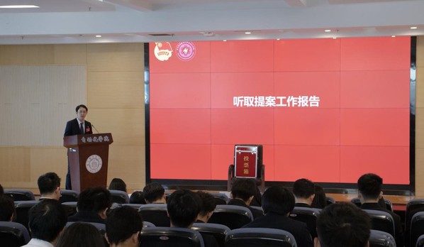 钱焜同学、卓鹏同学分别代表本次学生会、研究生会筹备工作组做提案工作报告。本次学代会、研代会收到了提案64件,涉及学术科研、教学管理、校园建设等八个方面,较为全面真实的反映了万象城同学的意见建议。提案工作的认真推进也是学生会、研究生会全心全意服务同学,担当师生联系桥梁的良好体现,对学院和学校的发展建设具有重要意义。
