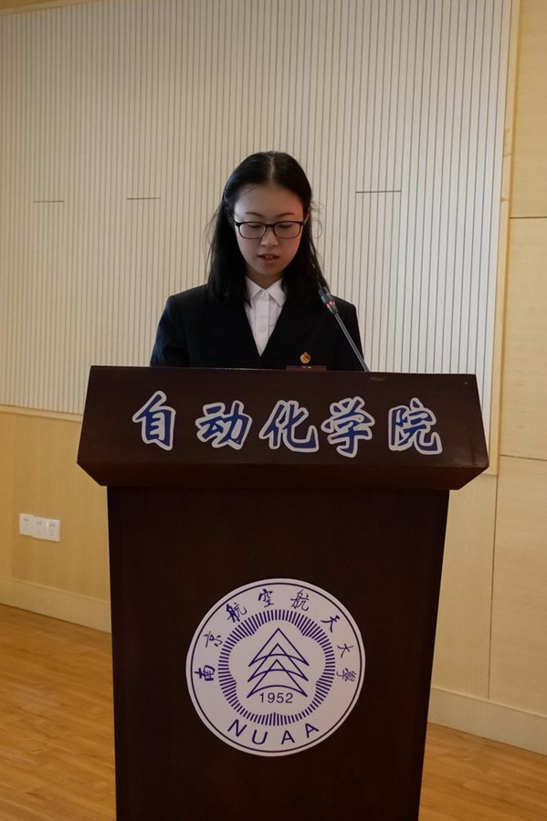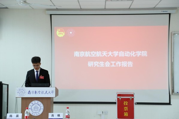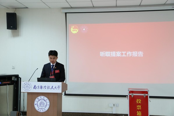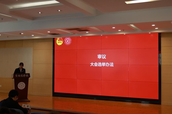 江柯欣同学宣读大会选举办法和南京航空航天大学AWC万象城娱乐第三次学生代表大会监票人、计票人名单及新一届学生会委员会委员,新一届学生会主席团候选人名单。