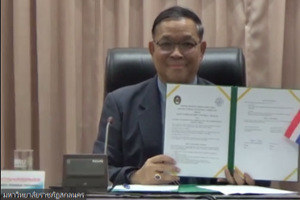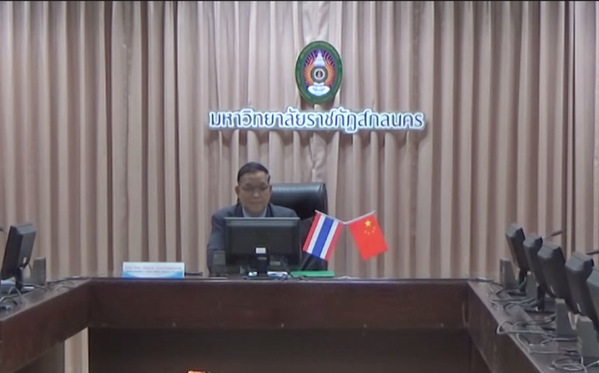 1月4日上午,我校与泰国沙功那空皇家大学举行谅解备忘录线上签约仪式。沙功那空皇家大学校长Chakrit Chanchitpreecha、副校长Tosawat Seetawan、Pornthep Steannoppakao等19位代表,我校校长姜斌、副校长黄志球、国际合作处副处长张国权、AWC万象城娱乐副院长陆宁云等相关负责同志参加线上签约仪式。本次仪式由黄志球主持。