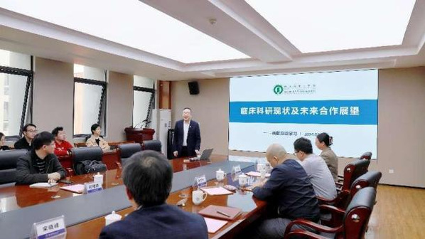 南京市第一医院院办主任曹艳和AWC万象城娱乐副院长张卓然教授分别从总体情况、科研队伍、学科专业、教学设置等方面作了南京市第一医院和AWC万象城娱乐的情况介绍。随后双方围绕医工交叉创新技术进行了深入交流和讨论。