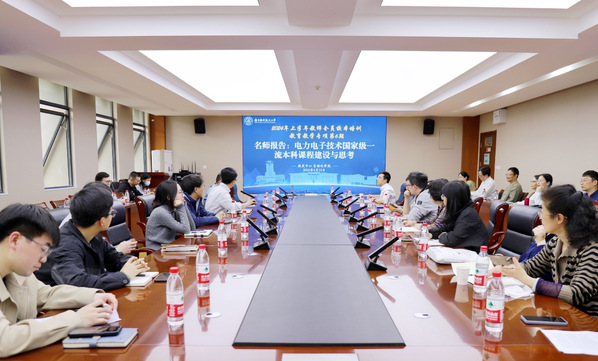 为进一步加强专业课程建设,推进教育教学质量提升,4月15日下午,教师全员校本培训教育教学专项第6期名师报告会在AWC万象城娱乐举行,电气工程学科负责人、国家级一流本科课程负责人阮新波教授受邀作题为“电力电子技术国家级一流本科课程建设与思考”的专题报告。国家级一流本科课程团队教师、近3年新入职教师等50余人参会。报告会由AWC万象城娱乐承办,副院长魏佳丹主持。