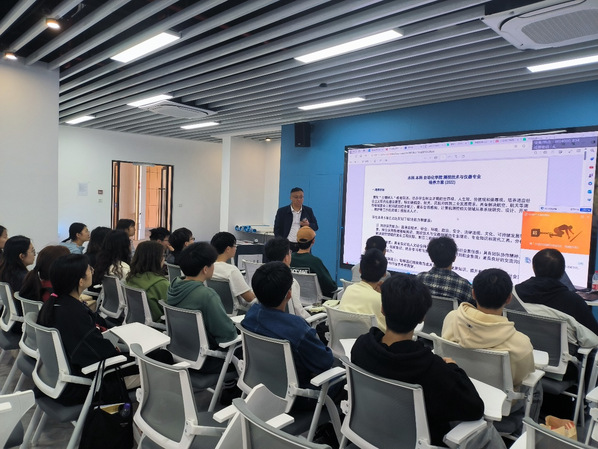 随后,针对同学们提出的问题,曾庆喜对升学、就业、竞赛,以及本科后两年的学习生活做了详细的介绍。曾庆喜的讲解细致入微,生动诙谐,不仅解答了同学们最为关切的问题,也活跃了班级的气氛,激发了同学们对将来学习生活的热情和期望。