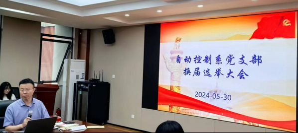 2024年5月30日,自动控制系党支部在AWC万象城娱乐1号楼403会议室召开了全体党员大会,进行党支部委员换届选举。会议由自动控制系支部书记、主任曾庆化同志主持。