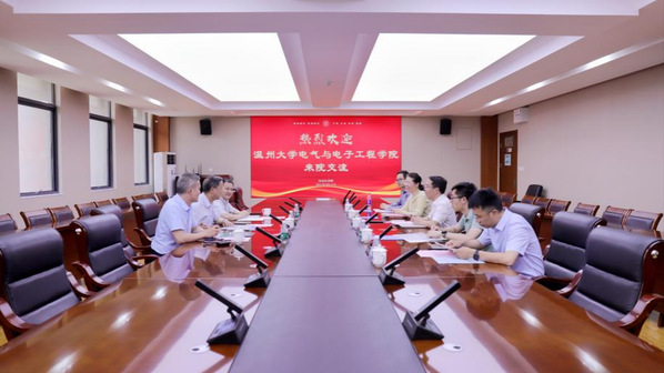 张卓然代表学院对温州大学电气与电子工程学院的来访表示热烈欢迎并介绍学院的基本情况。他表示,温州大学历史悠久,电气与电子工程学院依托海洋强国战略,深度融合电气产业国家先进制造业集群,在新能源技术领域不断深耕。希望双方加强交流,加快形成电气工程领域创新成果,促进新质生产力发展,构建新型能源体系,促进能源技术绿色低碳转型发展。