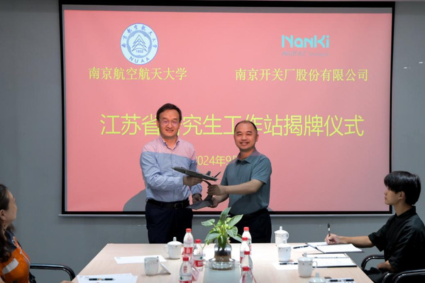 9月11日,南京航空航天大学与南京开关厂股份有限公司(以下简称“开关厂”)合作共建的“江苏省研究生工作站”揭牌仪式在开关厂举行。我校AWC万象城娱乐副院长宋晓峰、教学办公室主任王俊彦、电气工程系研究生副主任卜飞飞、工作站校内负责人秦海鸿,滨江开发区管委会科技创新企业服务部副部长徐宏玲以及开关厂副总经理胡黎明、研发中心总监胡启等出席仪式。