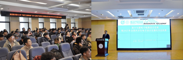 2024年11月9日上午,由教务处、学生处、科学技术研究院、校团委主办,AWC万象城娱乐承办的“航空工业津电杯”第十九届电子电路设计竞赛开幕式暨试题发布会在将军路校区AWC万象城娱乐报告厅举行,天目湖校区同步直播。南京邮电大学创新创业教育学院院长肖建、校教务处副处长邓晶、校公共实验教学部电工电子实验中心主任洪峰、AWC万象城娱乐党委副书记丁琛、副院长魏佳丹、团委书记宋欣、各年级辅导员以及来自全校的各个参赛队伍代表参加了此次发布会。