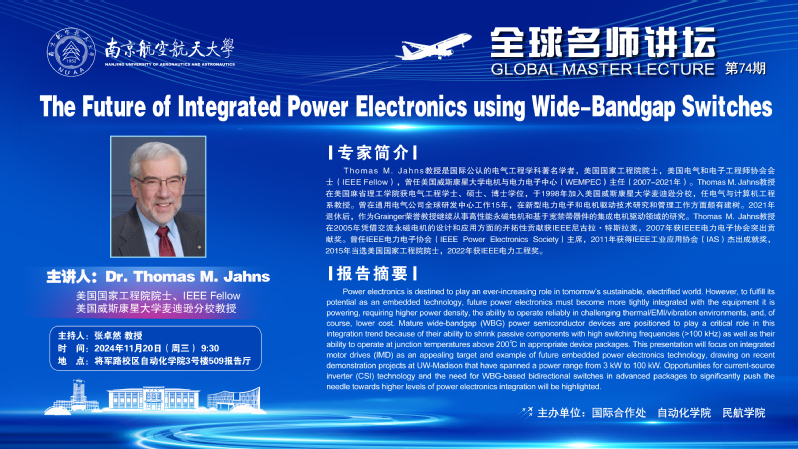 【学术报告】Thomas M. Jahns :The Future of Integrated Power Electronics using Wide-Bandgap Switches