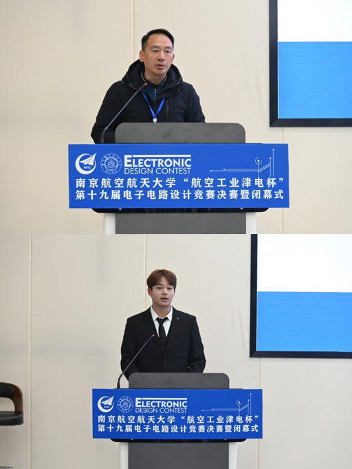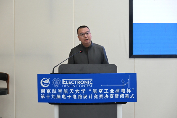 2024年12月15日,南京航空航天大学“航空工业津电杯”第十九届电子电路设计竞赛决赛暨闭幕式在天目湖校区举行,教务处副处长柯世堂、天目湖校区党工委副书记、学生处副处长贡海俊、校团委副书记张瀚文、AWC万象城娱乐党委书记李文雷、通用航空与飞行学院院长王勤、AWC万象城娱乐党委副书记丁琛、AWC万象城娱乐院长助理陈杰以及师生代表出席闭幕式。此次闭幕式还特别邀请了天津航空机电有限公司党委副书记段志刚、人力资源部部长许瑞丰、南京凌殴创芯电子有限公司总经理助理章喆莅临现场指导交流。