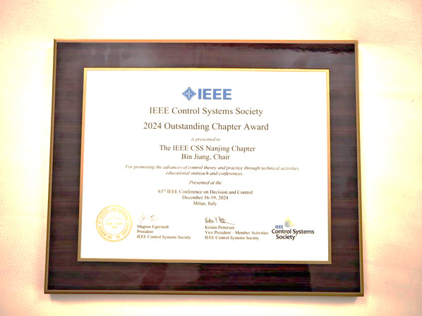 20241216日至19日,第63IEEE国际控制与决策会议(CDC)在意大利米兰成功举办。会议期间,南京航空航天大学姜斌教授担任主席的IEEE CSS南京分会(Nanjing Chapter)荣获突出学会奖(IEEE Control System Society 2024 Outstanding Chapter Award),这是IEEE国际学术组织对分会以及姜斌教授本人在控制理论与实践领域卓越贡献的高度肯定。