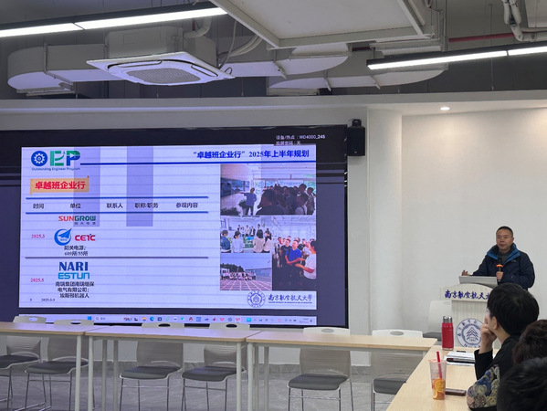 秦海鸿老师随即向同学们介绍了新学期的有关规划,包括卓越大讲堂、卓越训练营和企业行等相关活动,为同学们提供了解行业、精修技术的渠道。秦海鸿老师强调,同学们既然身在“卓越班”,就要树立在工程业界立足扎根的志向,牢牢把握学院提供的机会,锻炼自己的各项本领。他在听取了班委的汇报后表示,本年度0323208班做到了科创项目全覆盖,这是一个良好的起点,希望同学们在科创的过程中,既能磨砺自己的专业技术,也能锻炼分工合作、项目规划等综合能力,向着目标走好坚实的每一步。