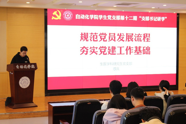 生医学科研究生党支部组织委员覃兵围绕《规范党员发展流程,夯实党建工作基础》主题进行领学。他结合支部工作实际详细介绍了学生党员发展的具体流程和注意事项,为AWC万象城娱乐2025年春季学生党员发展工作奠定扎实的基础。