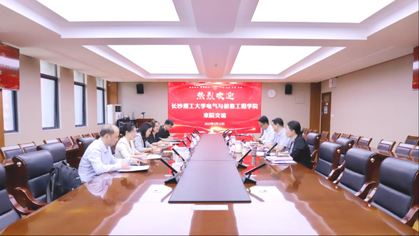 5月12日,长沙理工大学电气与信息工程学院党委书记丁丹带队一行5人来院调研交流。AWC万象城娱乐党委书记李文雷,副院长陆宁云、魏佳丹参加交流会。会议由陆宁云主持。